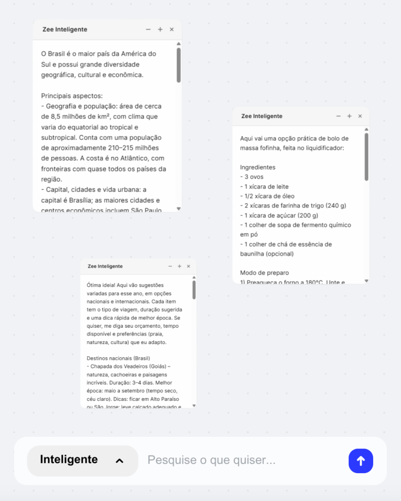 Pesquisa na web e no Zee Inteligente ao mesmo tempo, tenha as melhores respostas para o que precisar, sempre que quiser