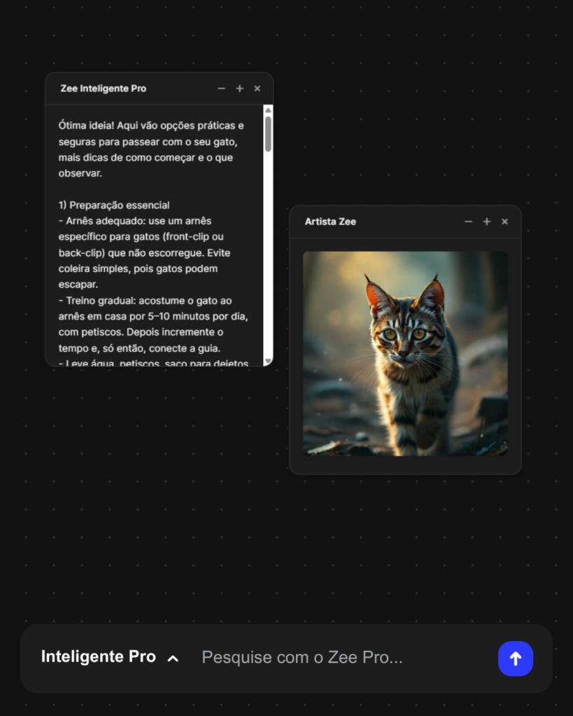 Pesquise com o Zee Max, gere imagens, crie códigos, tenha aulas e muito mais com o poder Max, sem contar a Pesquisa Aprofundada, um recurso exclusivo do Pesquisador Zee Max