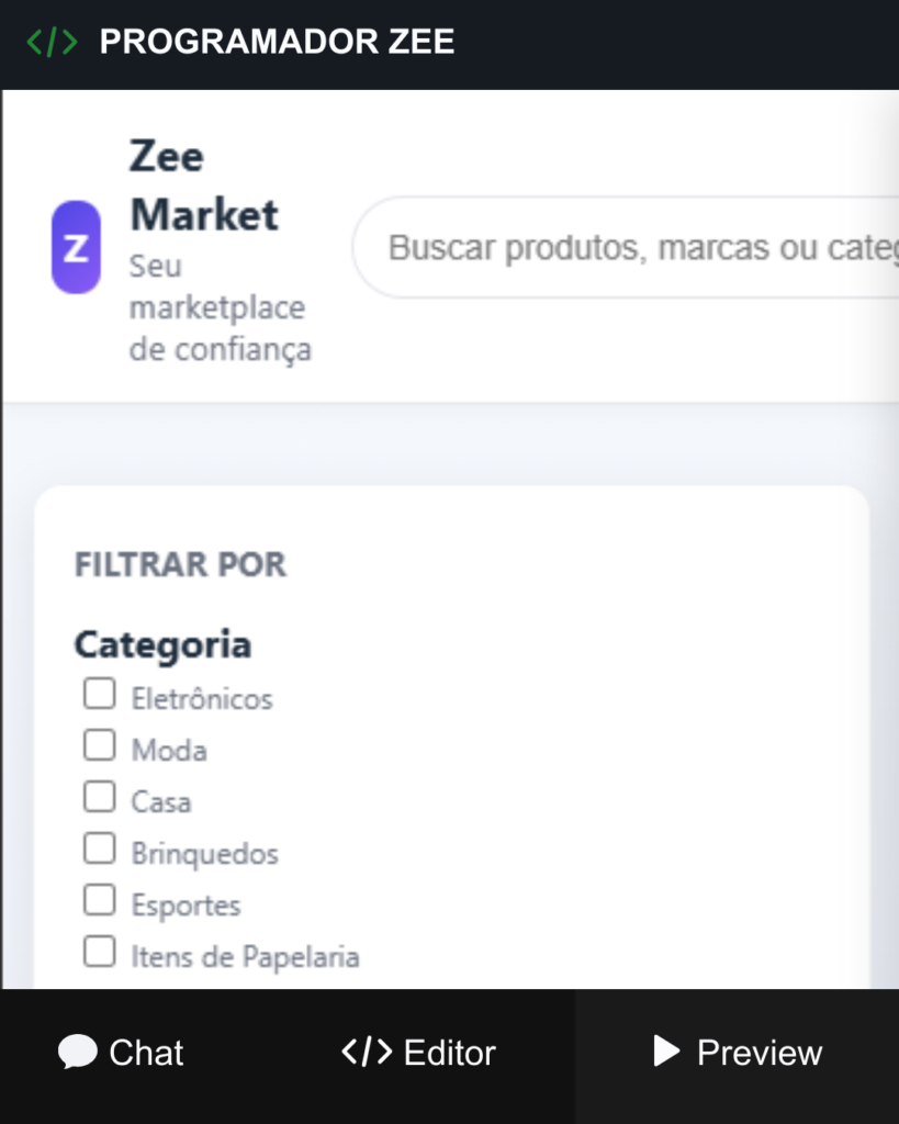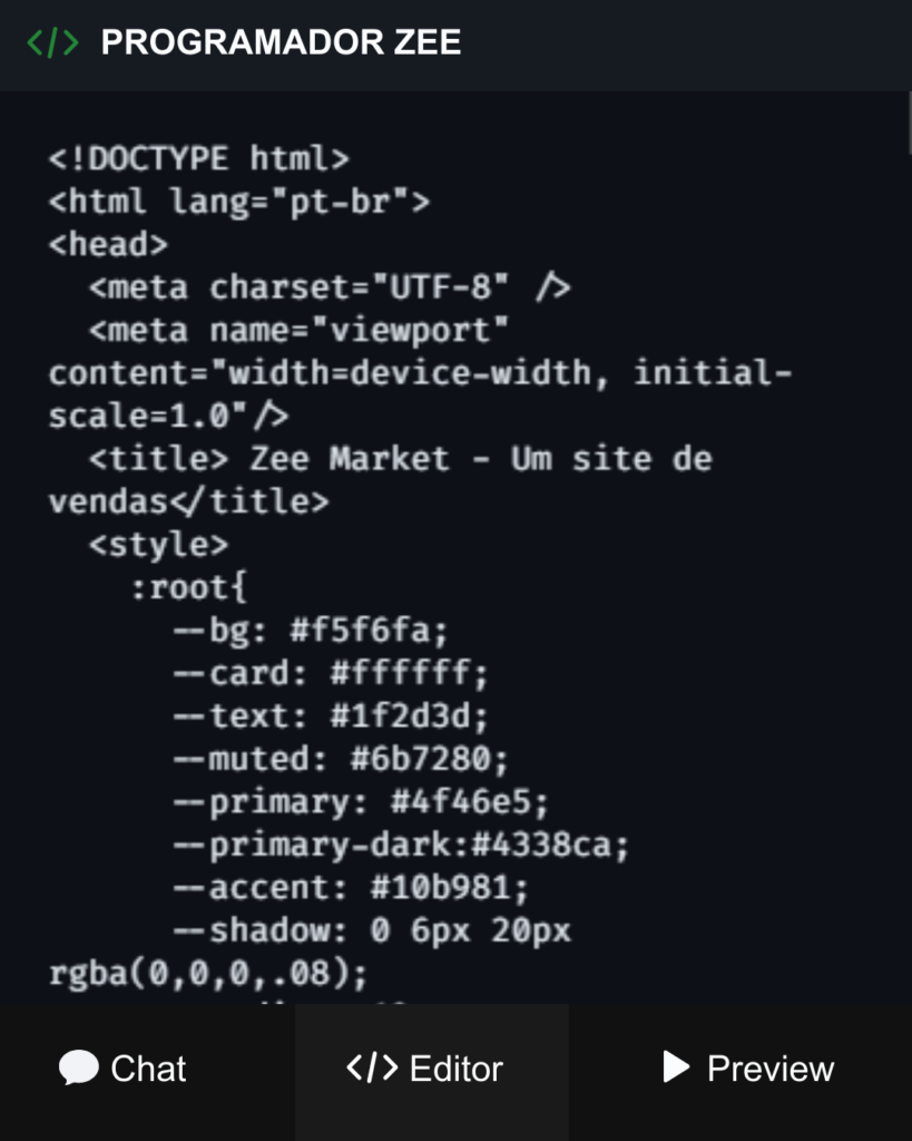 Peça para o Zee Pro gerar qualquer código que você quiser