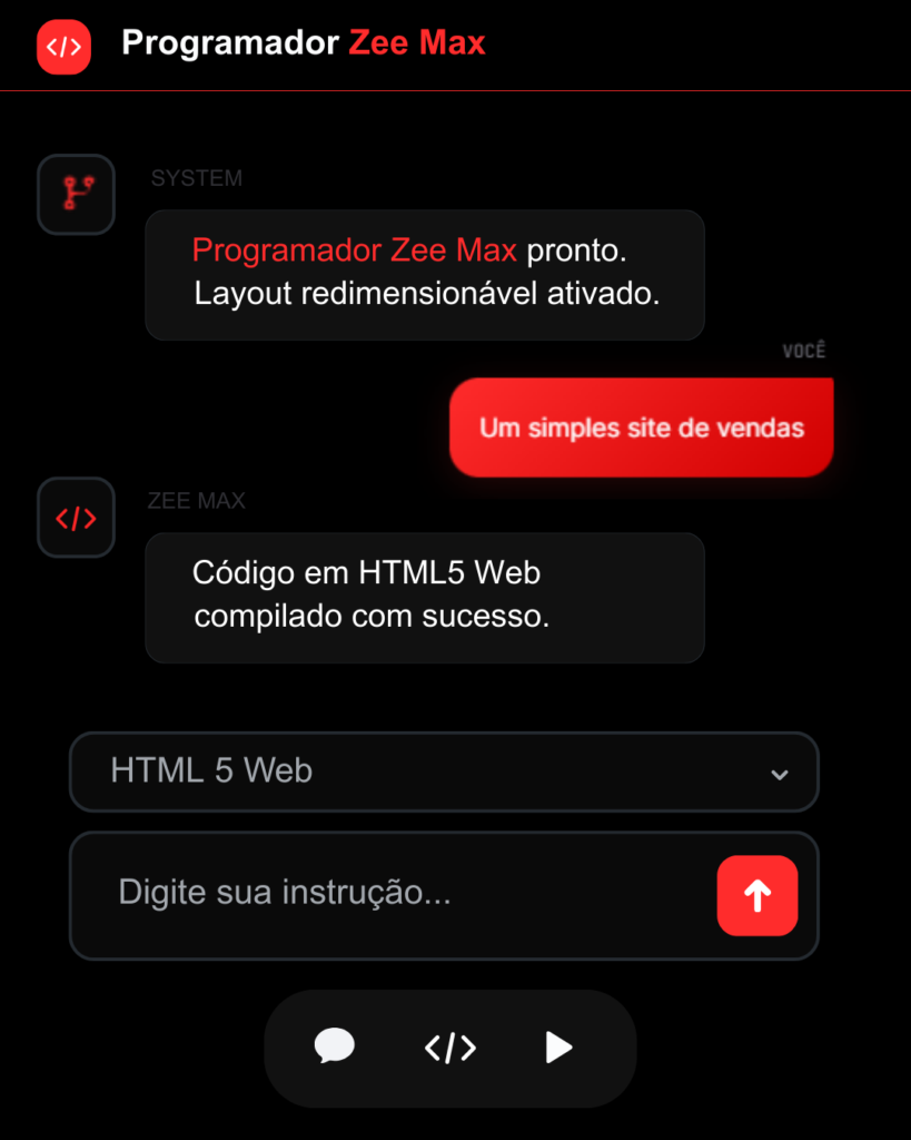 Com o Programador Zee Max, você pode pedir qualquer coisa para ele gerar, além disso é possível mudar a linguagem de programação que ele irá gerar